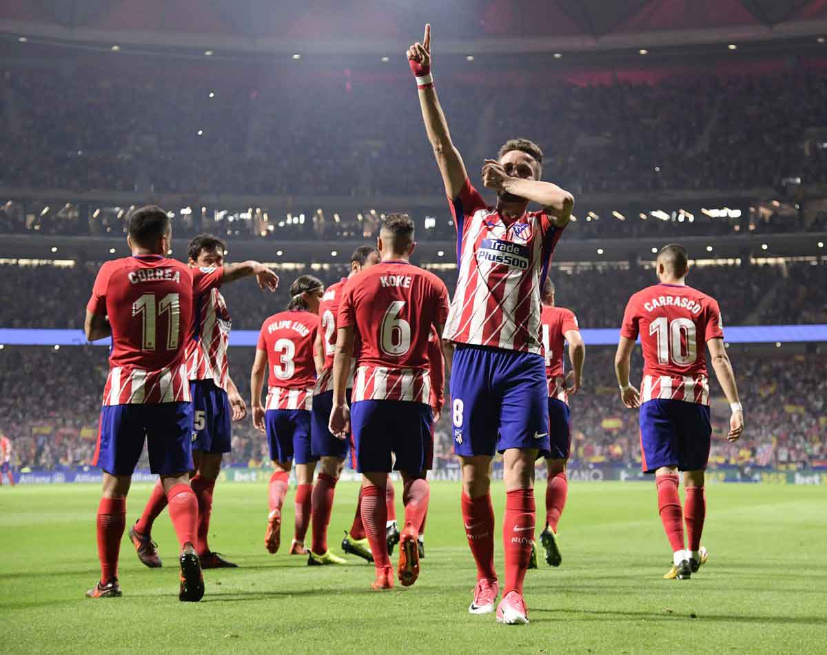 En el primer tiempo Barcelona se adueñó por completo del esférico; sin embargo los Colchoneros fueron muy peligrosos en el contragolpe y al minuto 21 lo dejaron de manifiesto al anotar el gol para inaugurar el marcador por conducto de Saúl Ñiguez.