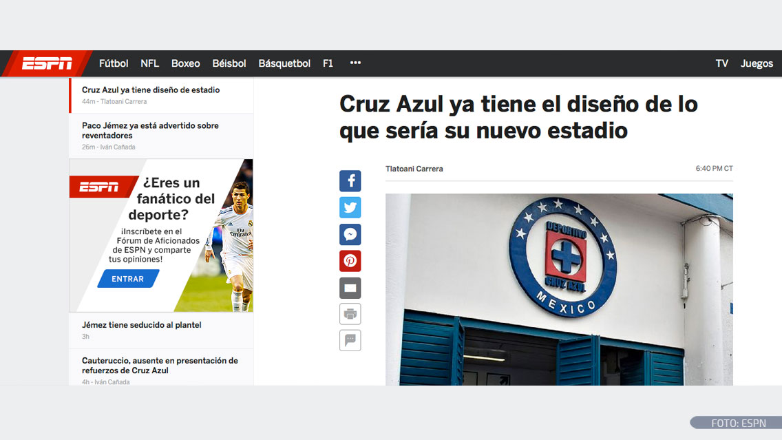 “Será un estadio muy moderno y ya está detallado cada uno de los espacios, donde se incluirán palcos VIP y una lujosa zona de comida. Tiene un cupo aproximado de poco más de 50 mil aficionados. Luce un enorme escudo de Cruz Azul en la fachada principal y está semi-techado con una estructura metálica en forma de ovoide”, señala el reporte de la cadena estadunidense.