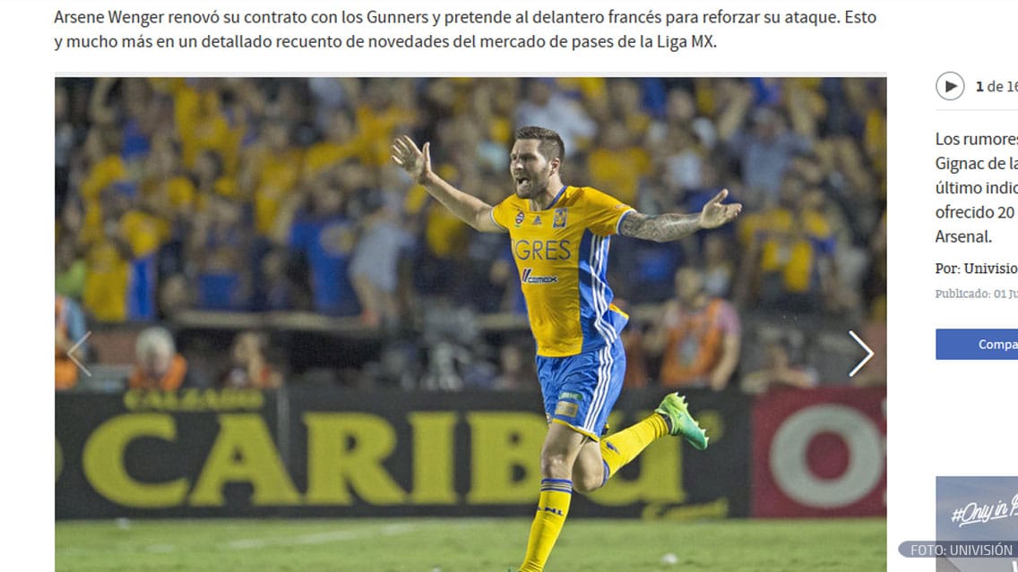 De acuerdo a la cadena Univisión, André-Pierre Gignac está en la mira del Arsenal, debido a que el estratega Arsene Wegner, quien acaba de renovar con el club, lo quiere de vuelta en el Viejo Continente, para hacer que los Gunners vuelvan a pelear por el título en la Premier League.