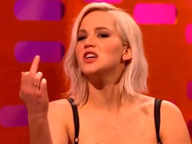 La actriz Jennifer Lawrence exhibió su animadversión contra el aspirante republicano a la Casa Blanca, Donald Trump, y en la televisión nritánica le mandó un mensaje de “fuck you” (jódete), acompañdo con un ademán de su dedo medio en todo lo alto.