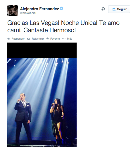 La gran sorpresa que se llevaron los asistentes al show de Alejandro Fernández en el MGM Grand Garden Arena de Las Vegas, Nevada, el pasado fin de semana, fue el debut de su hija Camila Fernández.